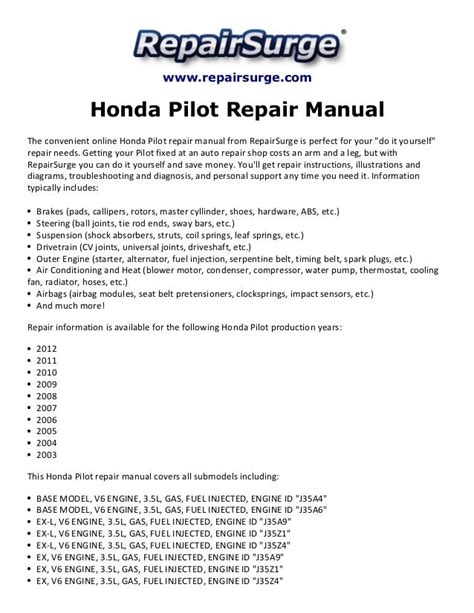 Download Honda Pilot Repair Manual Pdf Hardcover
